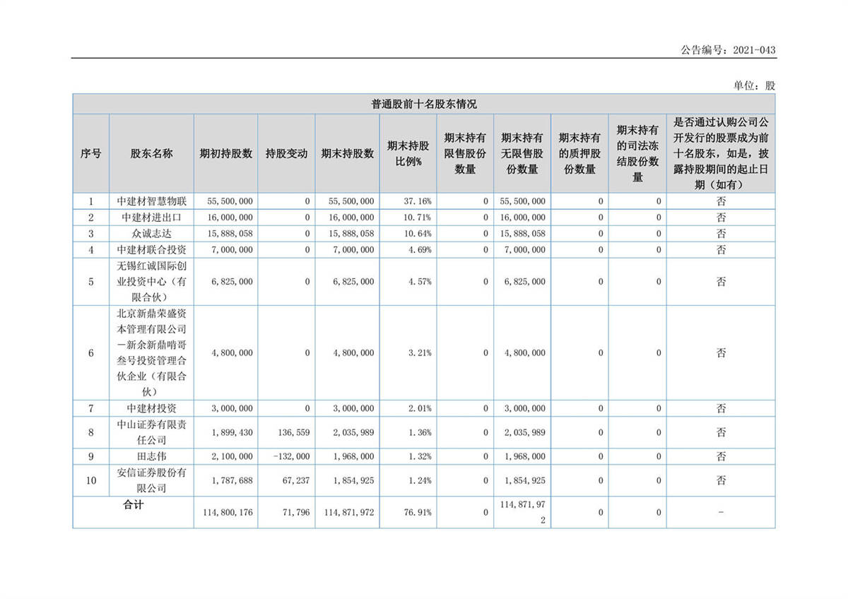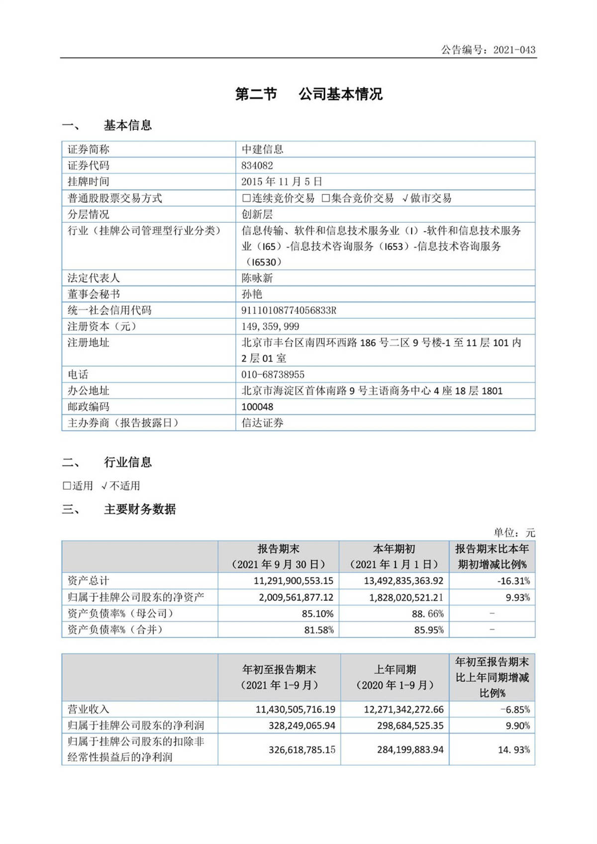 中建信息2021年第三季度報告