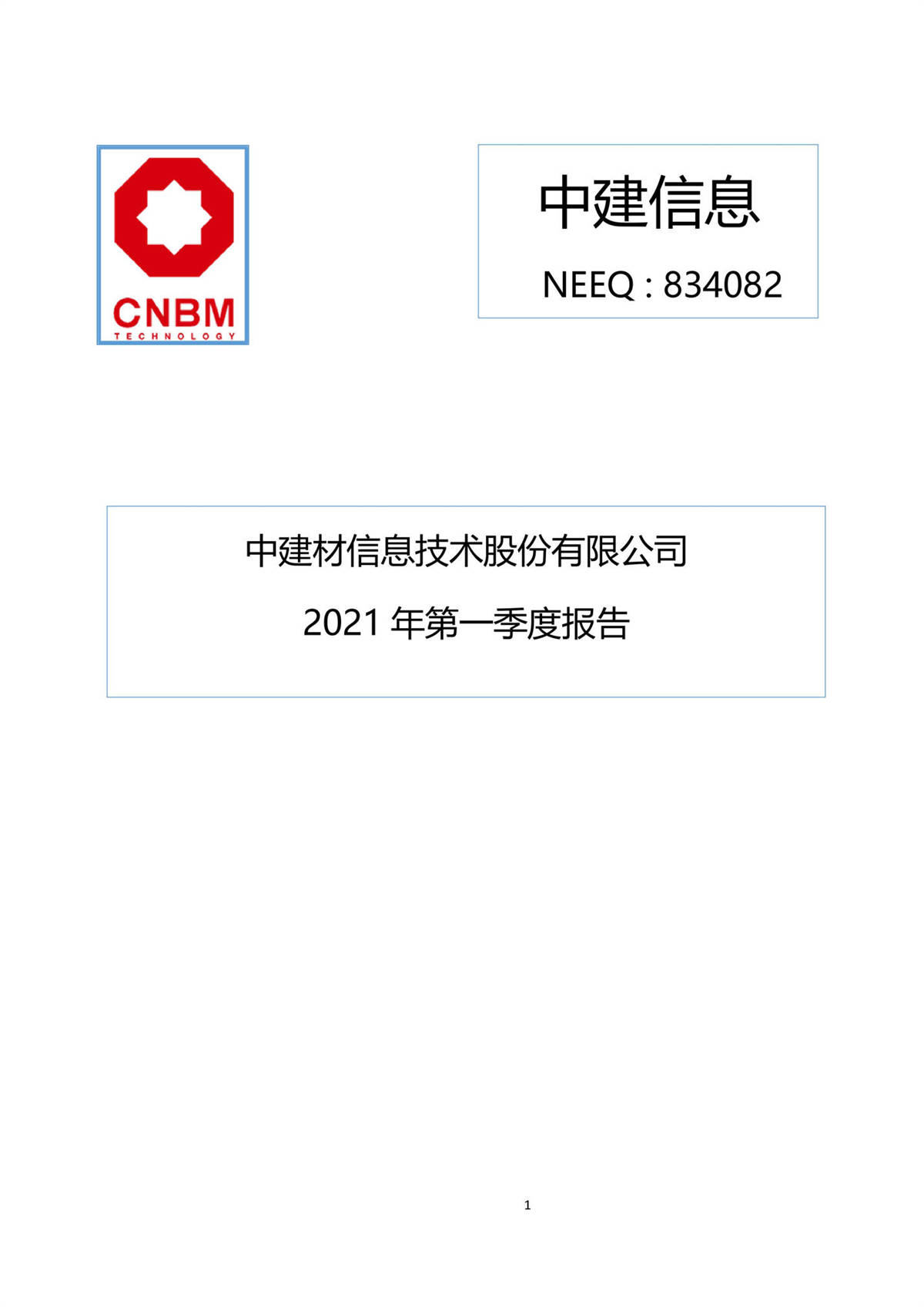 中建信息2021年第一季度報告